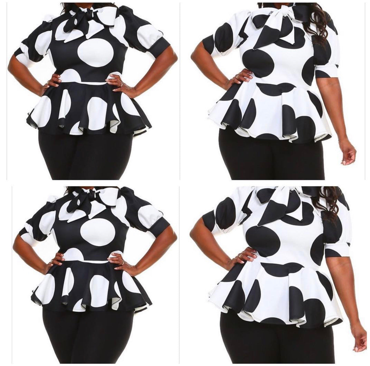 Black & White Peplum Shirt with Bow