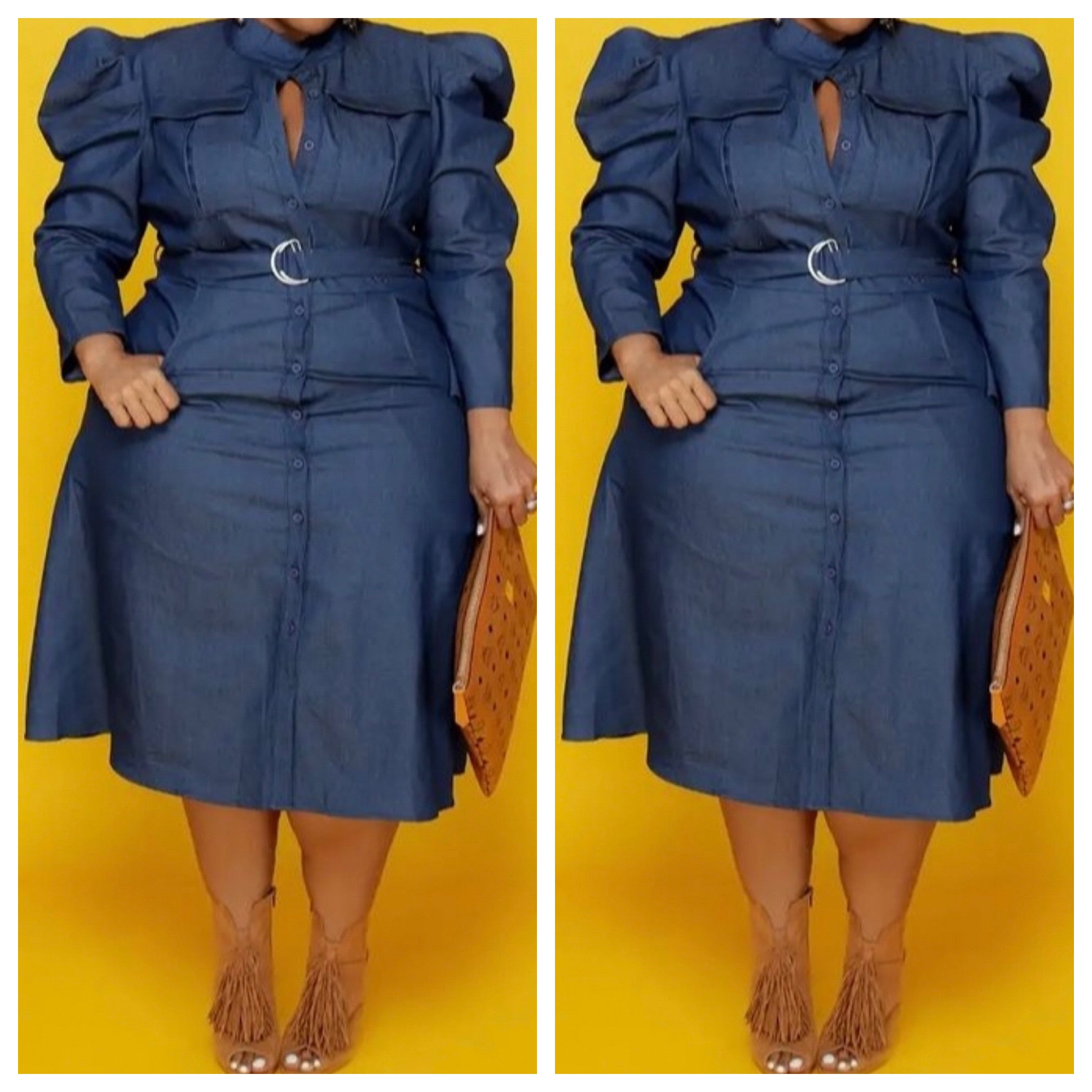 Midi Puff Shoulder Denim Dress